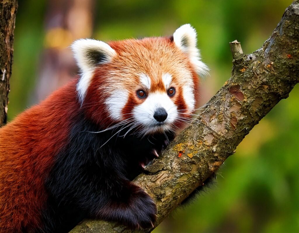 The red panda (Ailurus fulgens) is a small, tree-dwelling mammal native to the temperate forests of the Himalayas. It is classified as endangered, with an estimated global population of less than 10,000 mature individuals. Characterized by its striking reddish-brown fur, expressive eyes, and gentle temperament, the red panda is a symbol of both beauty and fragility in the natural world.