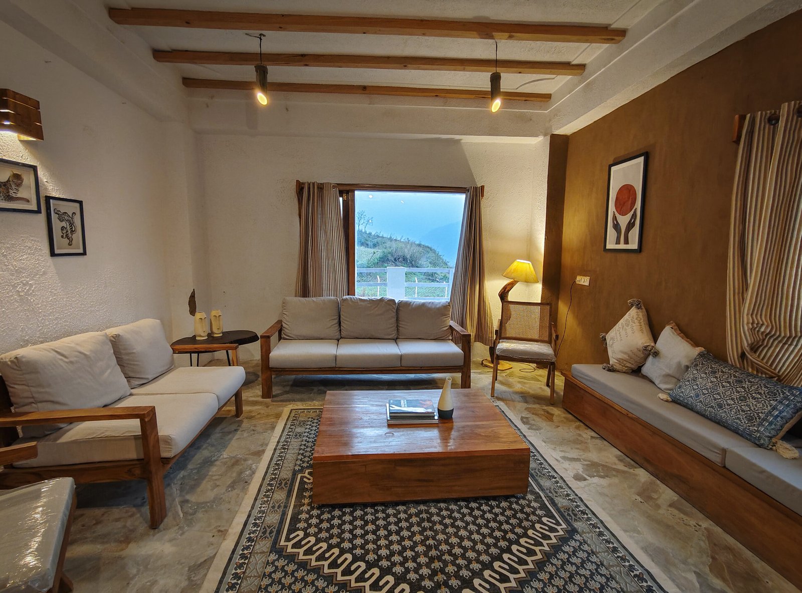 The five rooms at Hoongla Inn are a testament to thoughtful design. They are created in a tasteful style that seamlessly merges modern comforts with the essence of village living. Adorned with local artwork, traditional motifs, and earthy tones, each room exudes warmth and charm. The large windows in each room frame panoramic vistas of snow-capped peaks, inviting you to immerse yourself in the natural beauty that surrounds the homestay.